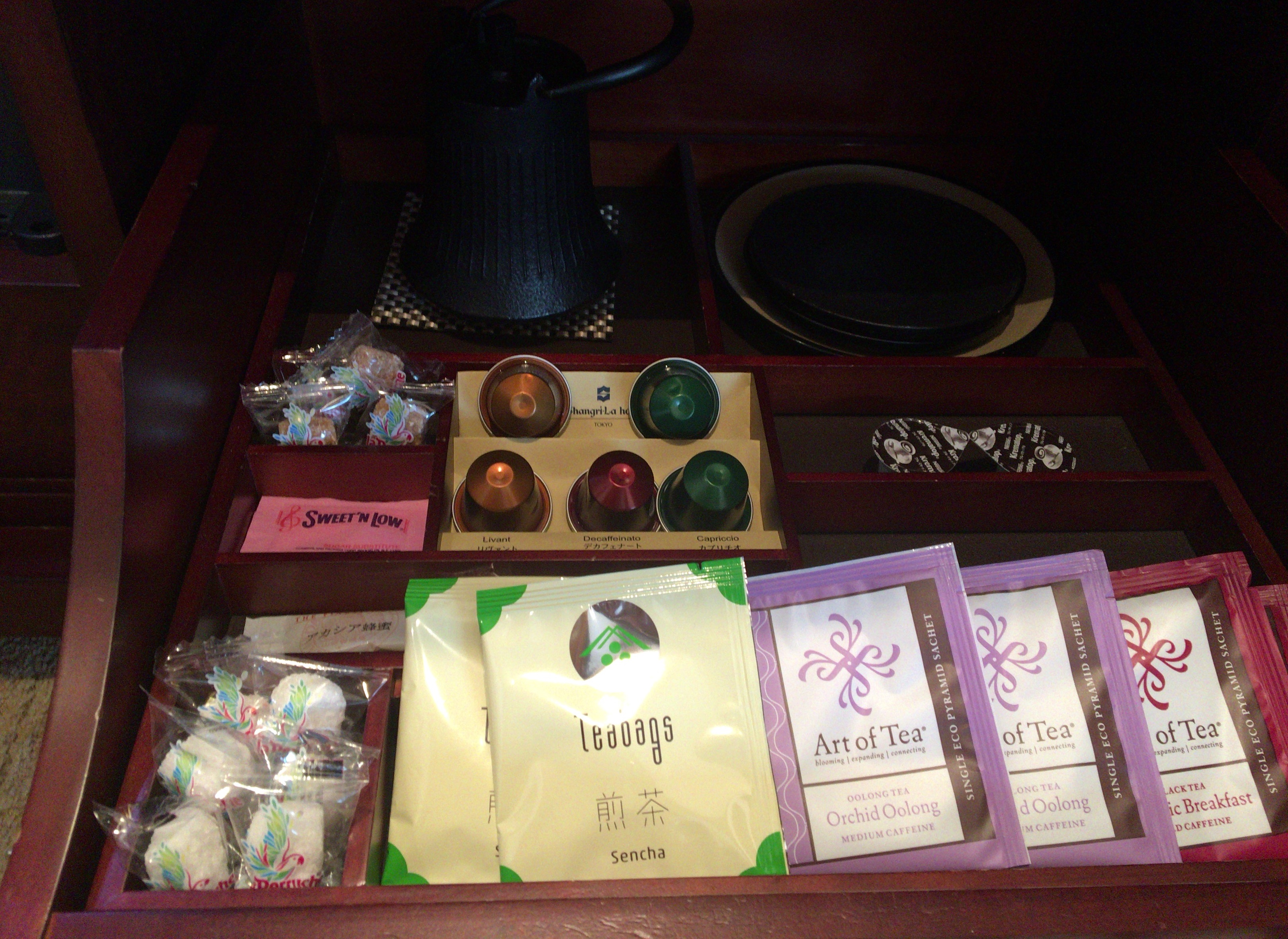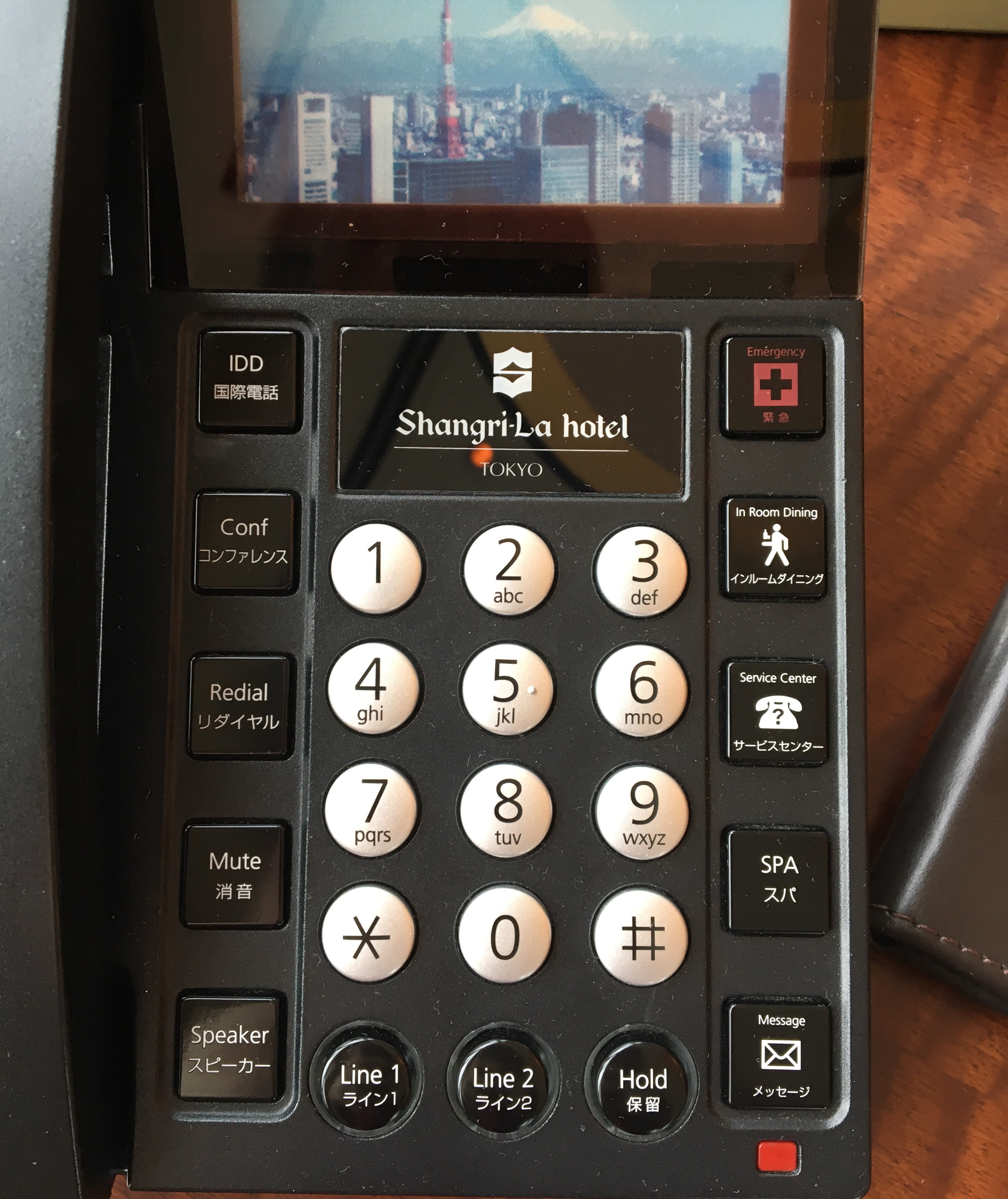 シャングリ・ラは電話機まで拘っている。番号を入力しなくてもボタン1つでインルームダイニング、サービスセンター、スパなどに電話を繋げることが出来る。