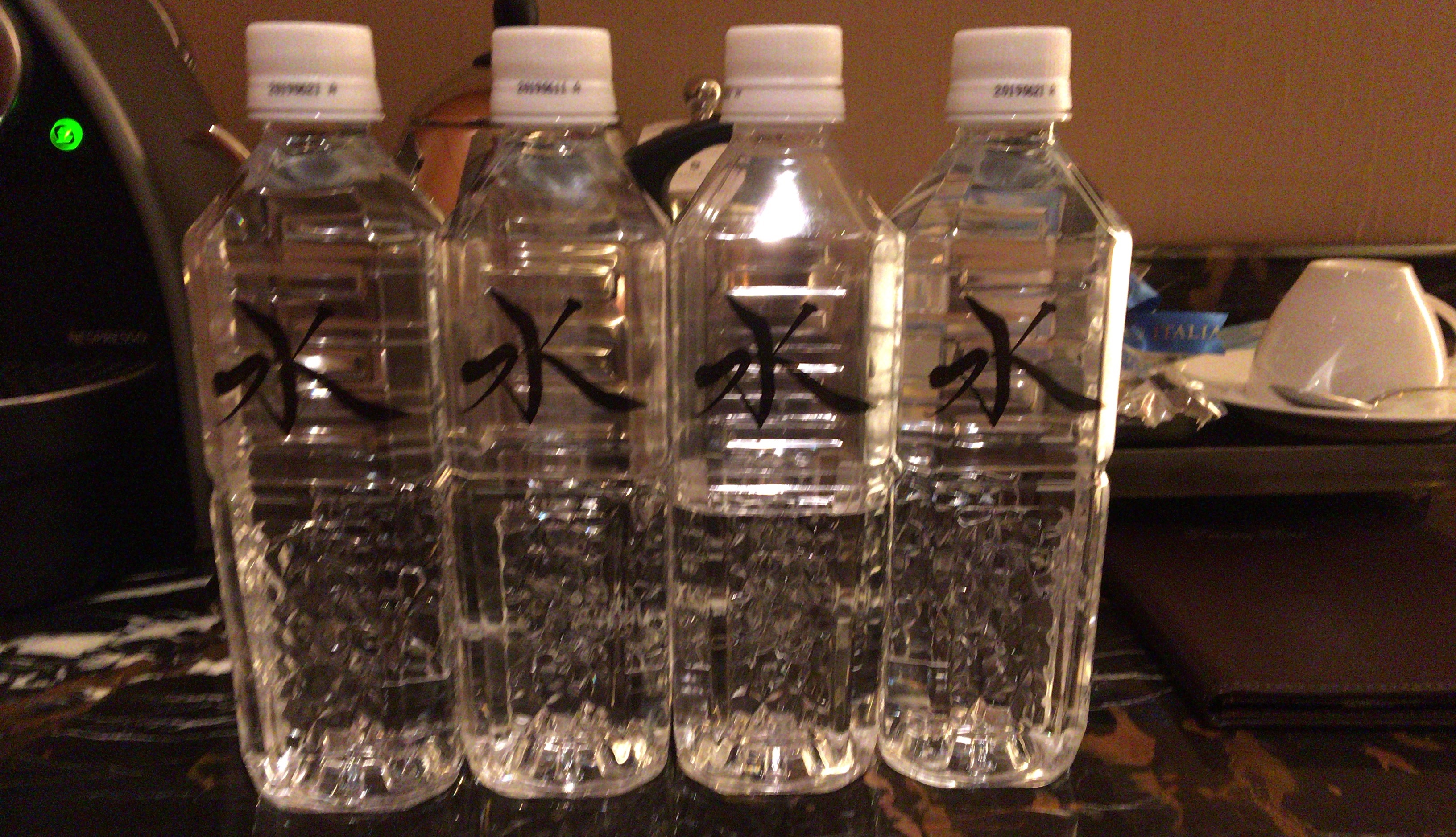 少し前に泊まったランドマークタワーのロイヤルパークホテルでは水が用意されておらず、確か有料のサービスだった。ロイヤルパークホテルは3万円以上の客室だから十分高級ホテルに分類されると思う。それで水すら無料で出さないってちょっとね。