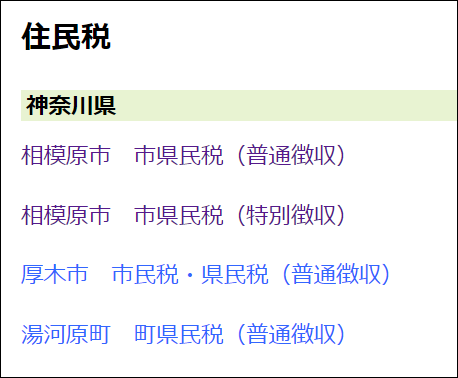 住民税をクリックしたら、自分が住んでいる都道府県を選択しよう。今回は神奈川県を選択する。