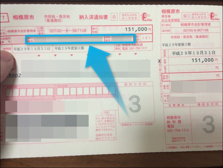 どちらも通知書に記載されている。納付番号に関しては18桁と凄く長い入力になるから間違えないように注意すること。