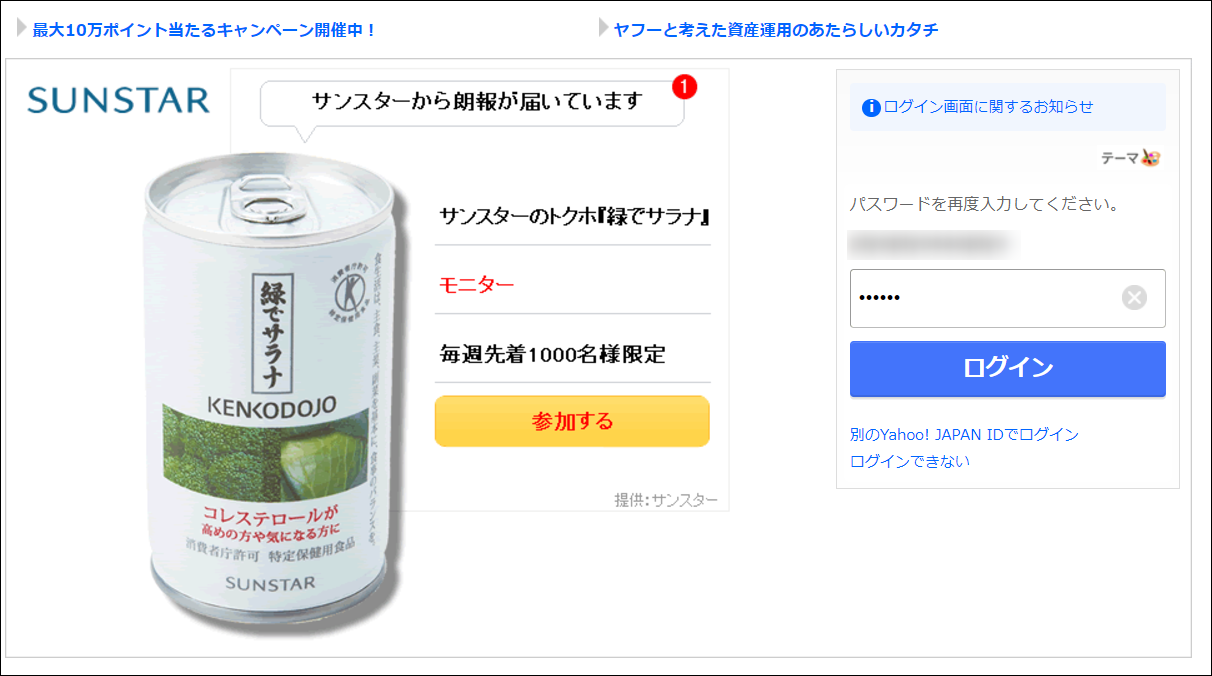 ヤフーのアカウントを持っていない場合は『こちら』から事前にアカウントの作成をしておくこと。
