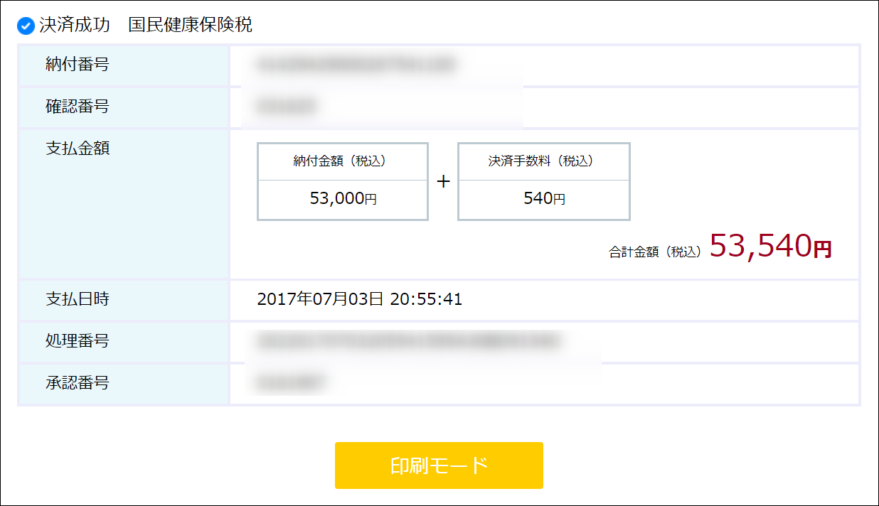 後はページ下部にある『印刷モード』→『印刷』を進んでいき、支払い内容を印刷しておこう。
