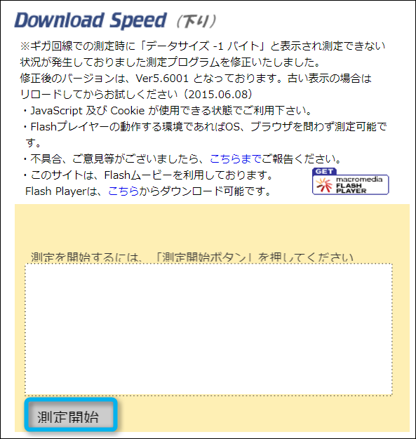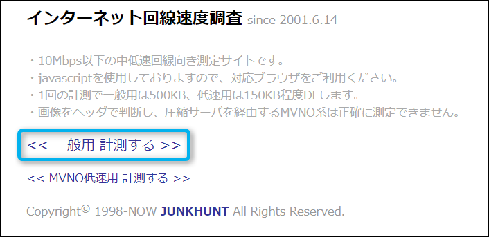 10年以上前に開設された回線の通信速度を測定出来るサイト。ちょっとばかし古臭いサイトだけど問題なく測定することが出来る。