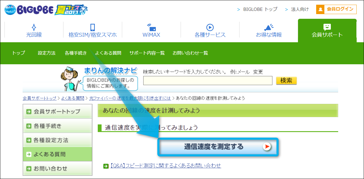まずは『あなたの回線の速度を計測してみよう(BIGLOBE)』にアクセスしよう。