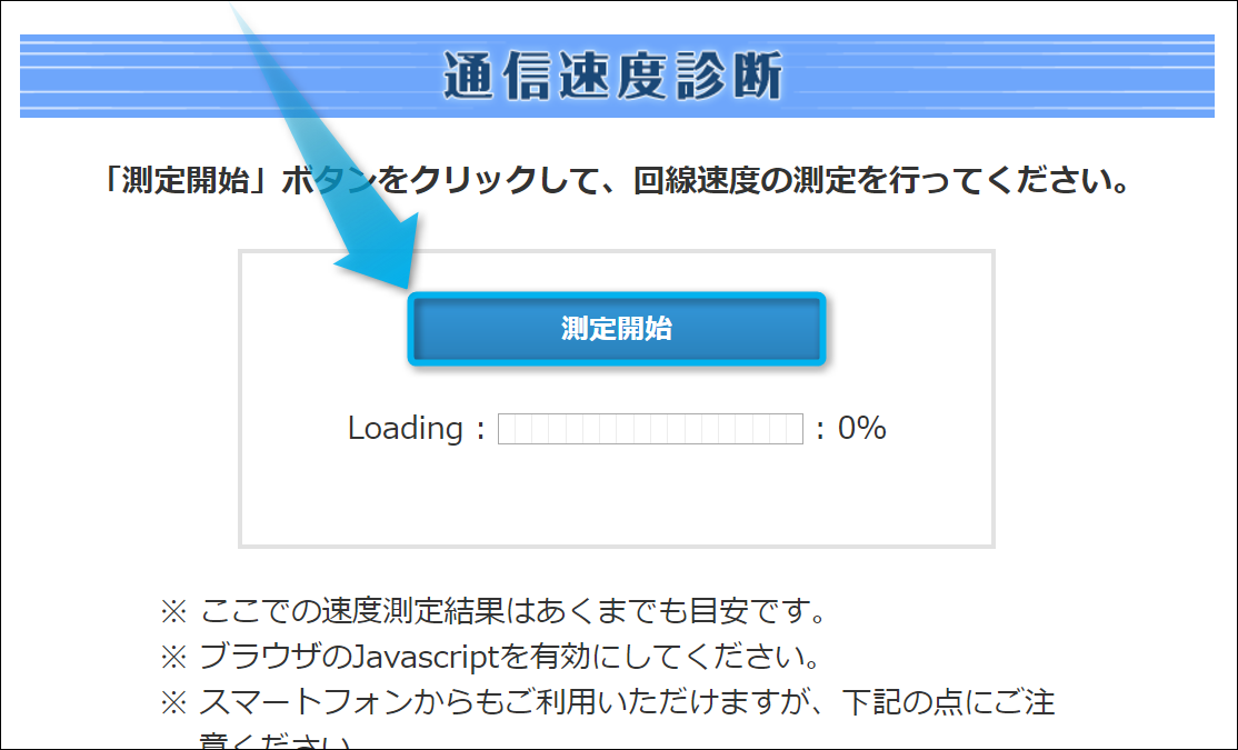アクセスしたら『スピード測定』をクリックして欲しい。