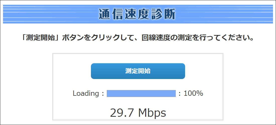5秒ほど待機すると結果が表示される。今回は29.7Mbps。
