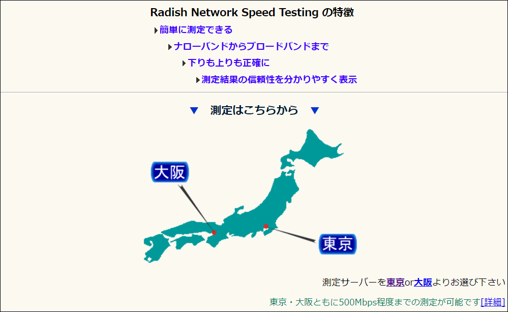 まずは『Radish Networkspeed Testing』にアクセスしよう。