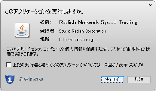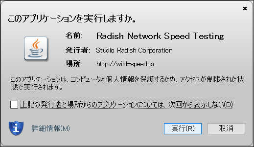 このアプリケーションを実行しますか?というメッセージ画面が表示されたら『実行』を選択する。