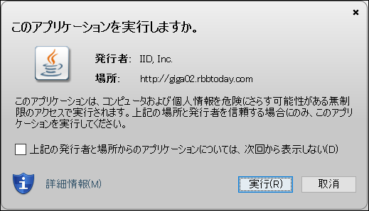 Javaが有効になっていれば上の画面が表示されるから『実行』を選択しよう。
