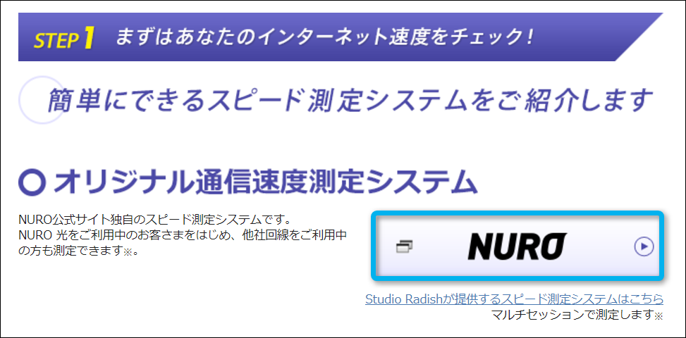 まずは『回線速度の計測(NURO)』にアクセスしよう。