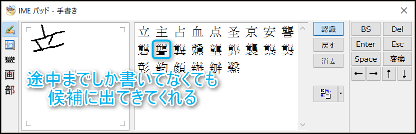 マウスで漢字を書くとか難しすぎるよ!って思うかもしれないけど、別に丁寧に書く必要はない。棒の本数とか、その漢字の特徴をしっかり書くことが出来れば、問題なく読み取ってくれるから安心して欲しい。