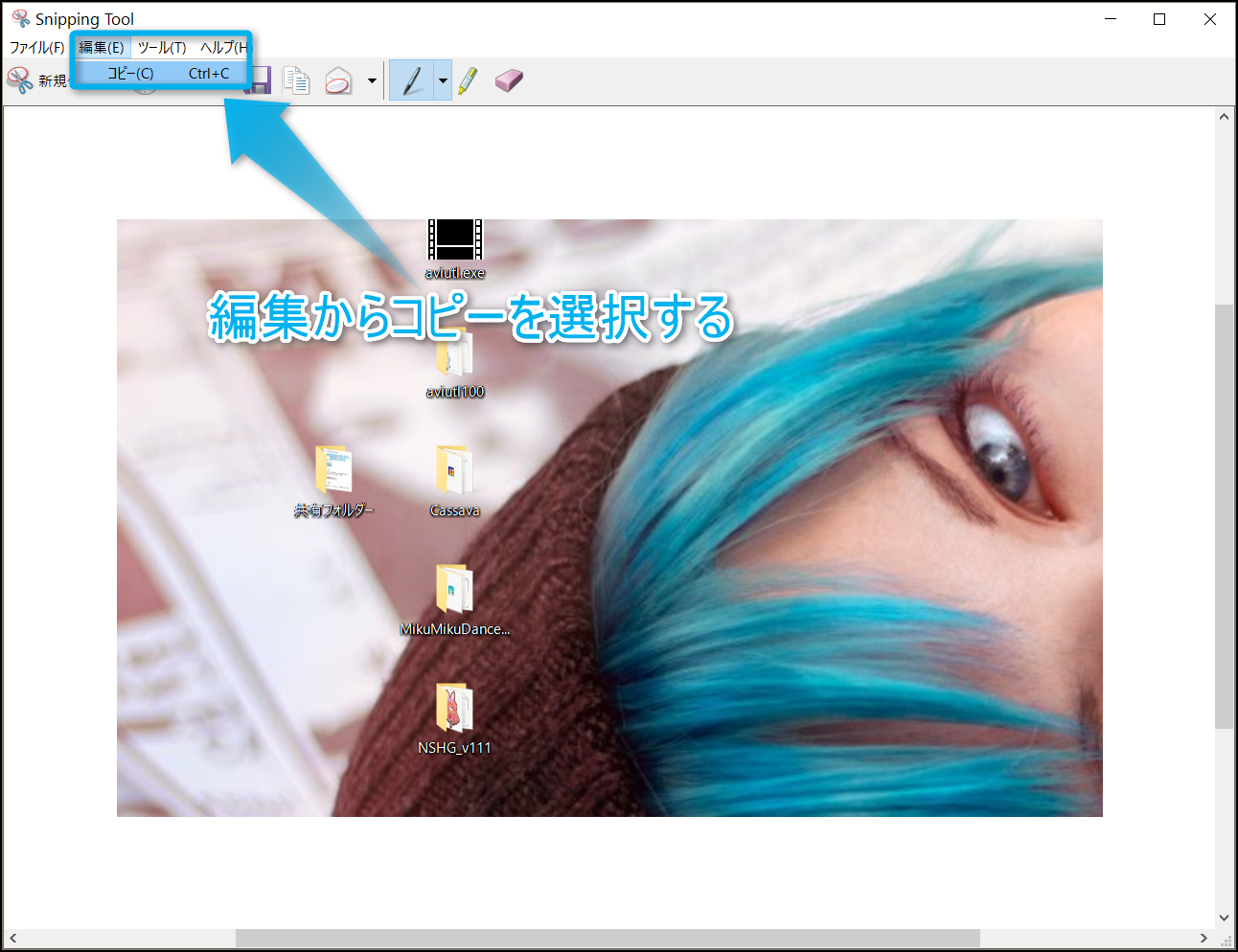 編集から『コピー』を選択するか、キーボードの『Ctrl』+『C』を押してみよう。