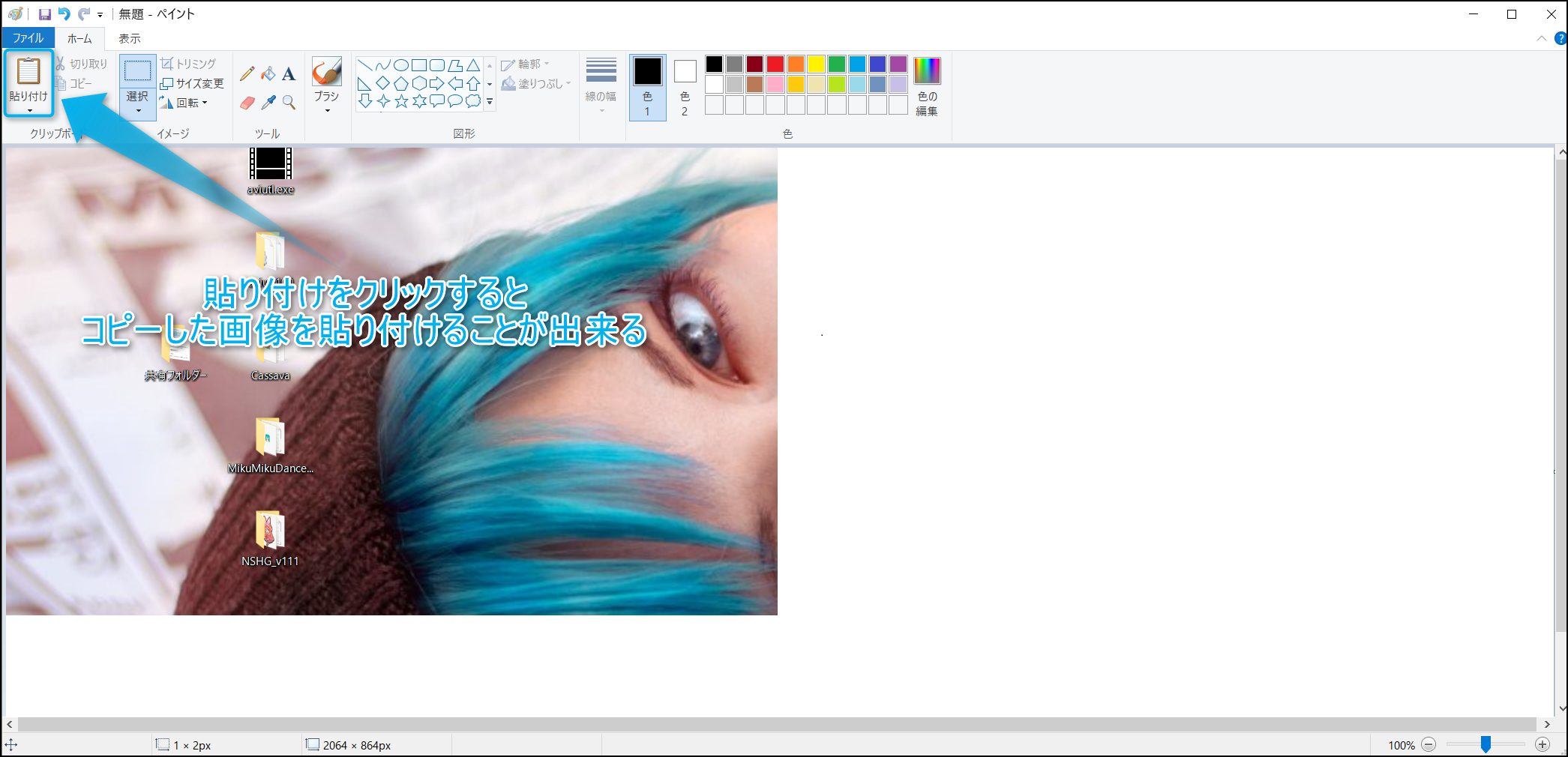 次にペイントなどの画像編集ソフトを開き『貼り付け』をクリックしてみよう。(『Ctrl』+『V』でもOK。)すると、コピーした画像を貼り付けることが出来る。