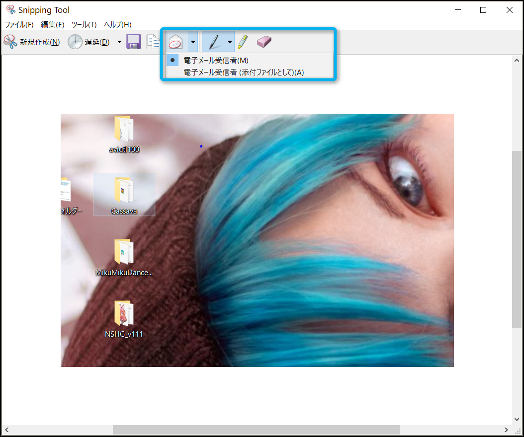 Snipping Toolはキャプチャをする際に、画像を色々な方法で切り取ることが出来る。画面全体だけじゃなくて、指定した画面を保存したり出来るってことだね。この機能は新規作成の『▼』をクリックすると開くことが出来るよ。