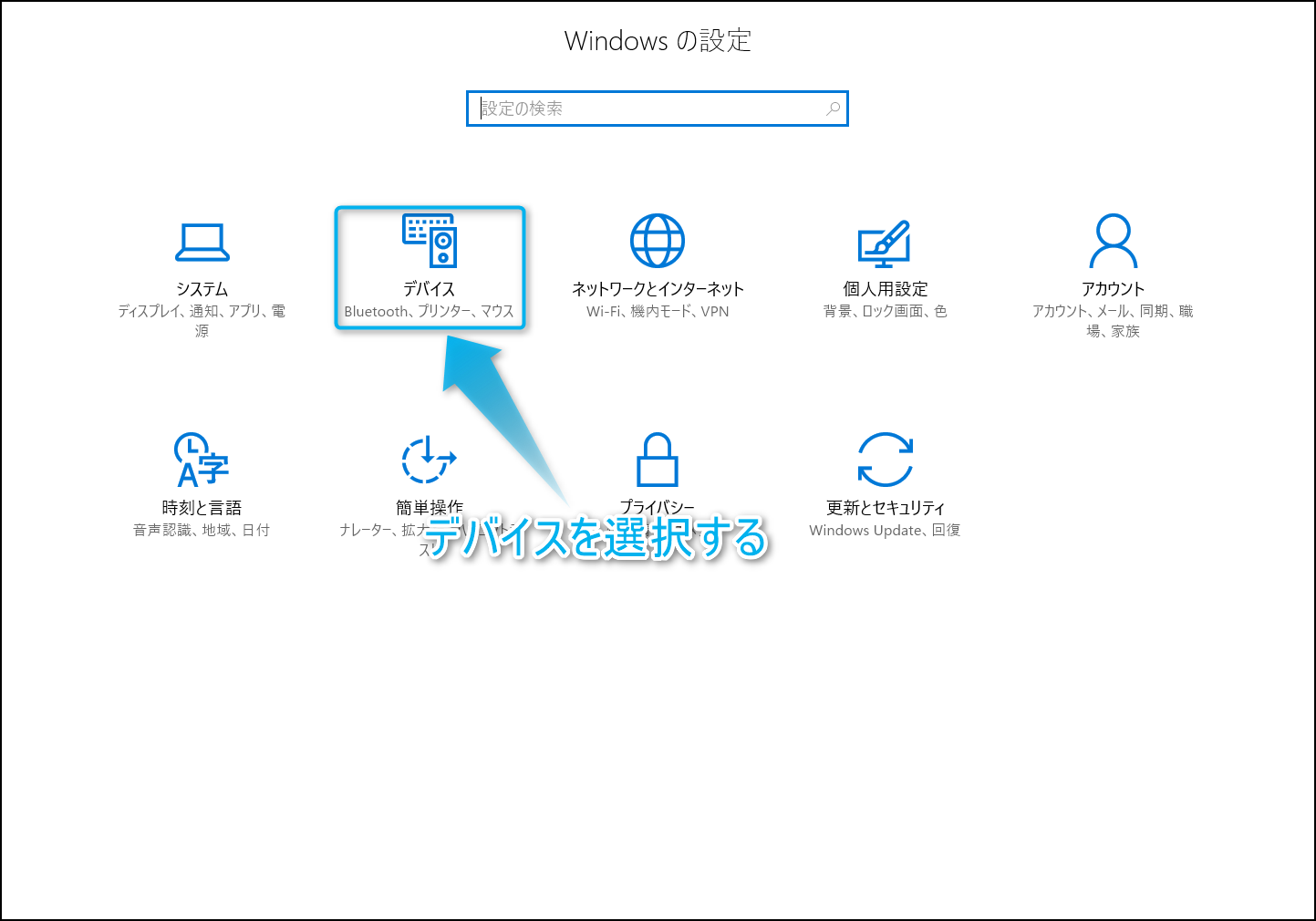 Windowsの設定画面を開いたら『デバイス』をクリックしよう。
