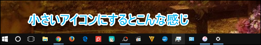 今までタスクバーを使っていて使いやすい。と感じていたならそのままでOK。もう少し小さくても良いかも?と思った人は小さくするのもアリかな・・・。ただの自己満カスタマイズで重要な機能ではないね。