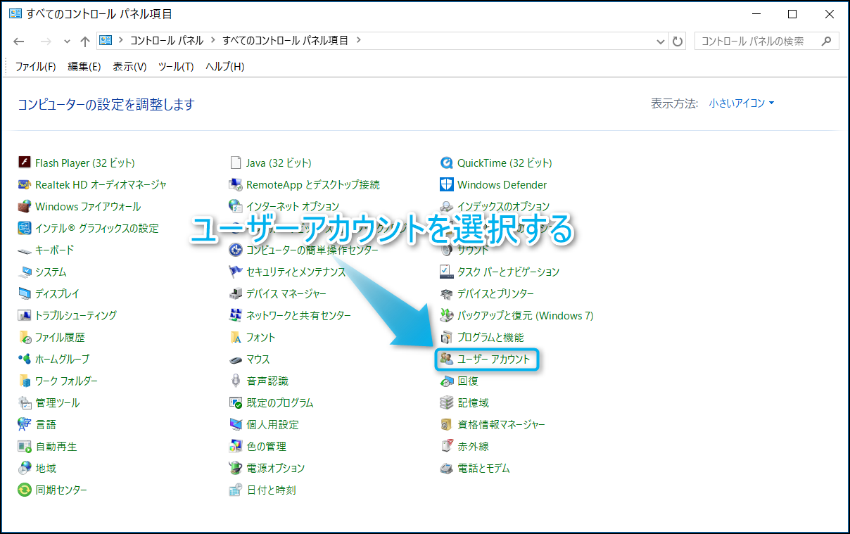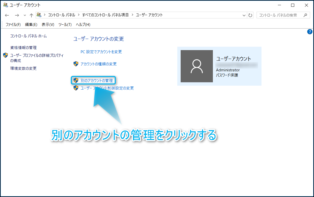 続いて、コントロールパネルからアカウントの種類を変更する方法を紹介していくよ。