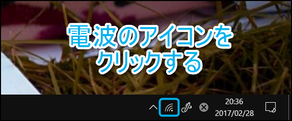 タスクバーの通知領域に表示されている『電波のアイコン』をクリックしよう。