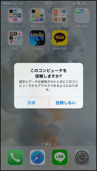 iPhoneをPCに接続すると、初回のみ『このコンピュータを信頼しますか?』というメッセージ画面がiPhone側に表示されることがあるよ。この表示が出た場合は必ず『信頼』を選択しておこう。信頼しないを選択すると、PCがiPhoneを認識してくれなくなってしまう。