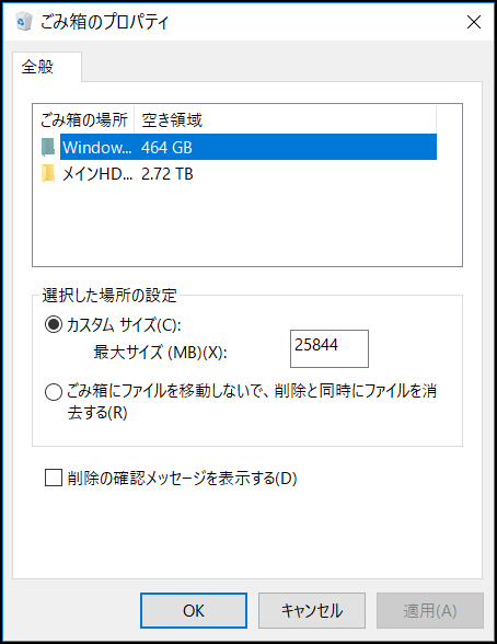 確認メッセージを表示すれば、削除したと同時にファイルがゴミ箱に移動されなくなる。これによって大切なファイルを間違えて削除してしまうリスクを減らすことが出来るって訳だね。