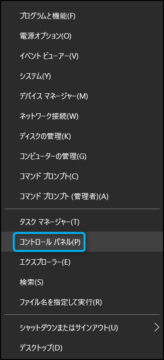 メニューを開いたら『コントロールパネル』を選択して欲しい。