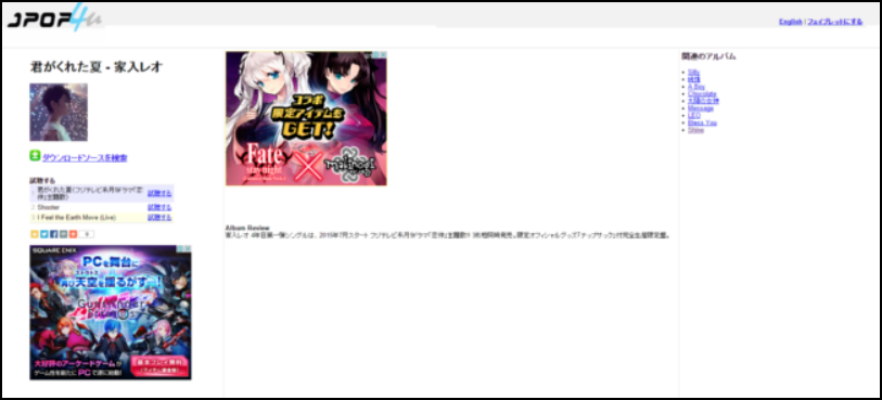 J-POPやアニソンをアルバムごとダウンロード出来るサイトとして知られていたけど、今は閉鎖されており当然音楽もダウンロード出来なくなっている。更新頻度は高くなかったけど、ダウンロード前に視聴出来るという他のサイトにはない利点を持ち合わせていた。