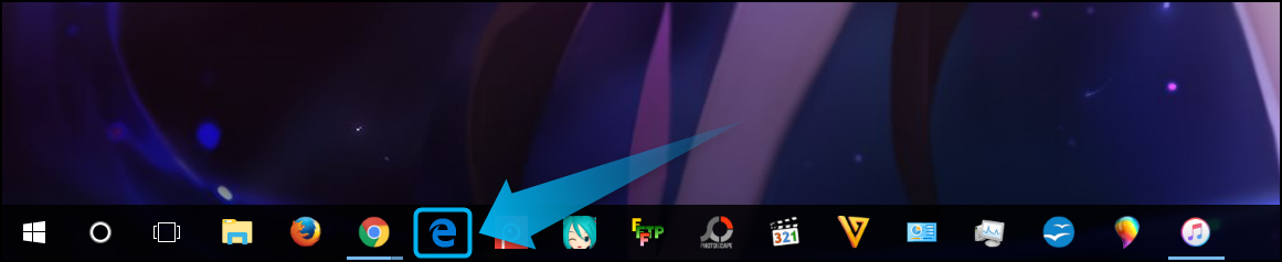 まずは、スタートメニューからタスクバーから『Micorosoft Edge』の起動させよう。