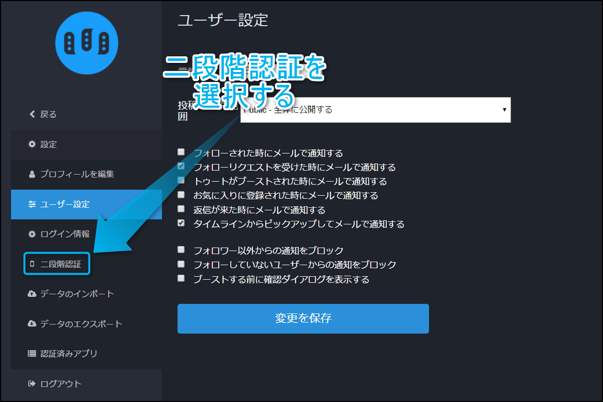 Mastodonで二段階認証を有効にしてログインする方法