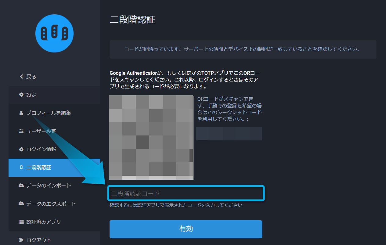 コードは『二段階認証コード』と記載されている場所に入力しよう。これ、最初はどこに入力したら良いのか凄く分かりづらいよね。もうちょっとコードの入力場所が分かりやすいように工夫するべきだと思う。