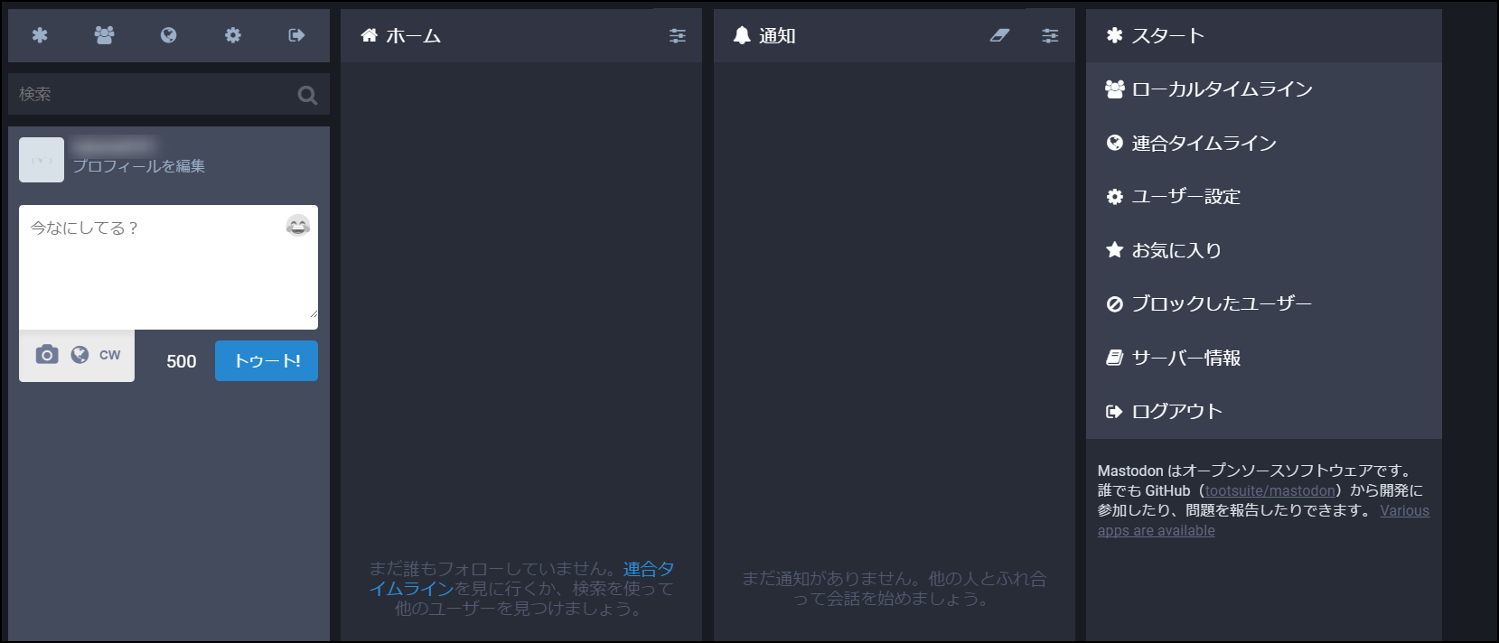 登録が終わったら、Mastodonのトップページにアクセスしよう。