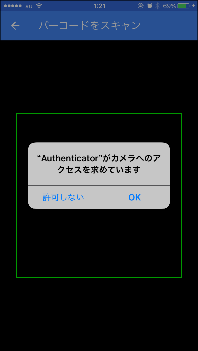 Authenticatorがカメラへのアクセスを求めています、という画面が表示されたら『OK』をタップして欲しい。