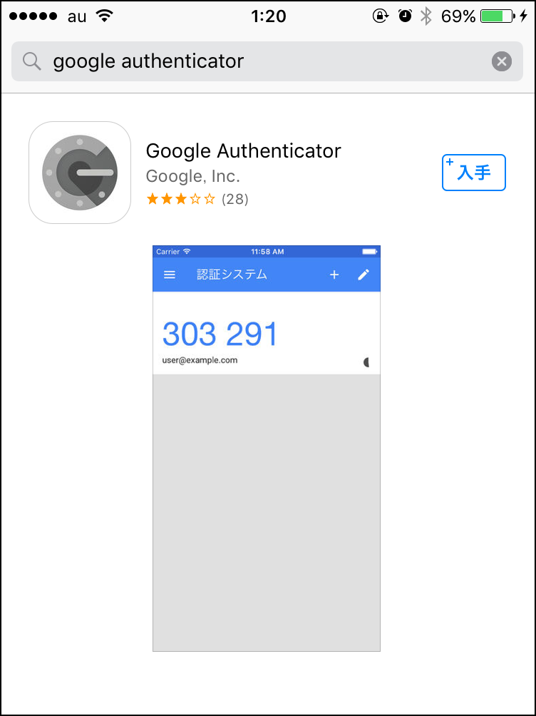 iPhoneであれば『Google Authenticator』と検索すればすぐに見つけることが出来る。アプリをインストールすることで料金が発生することはないから安心してね。