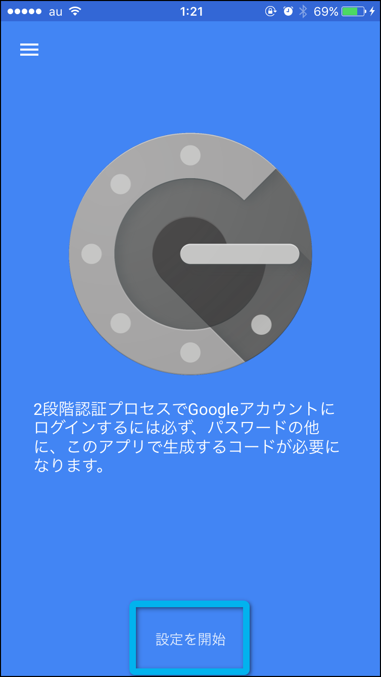 Google Authenticatorをインストールしたら、アプリを起動させて『設定を開始』をタップしよう。