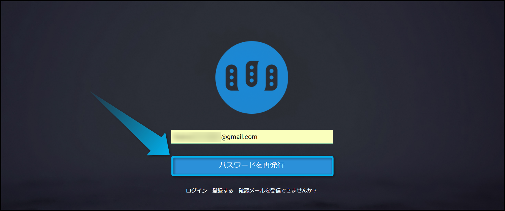 メールアドレスを入力したら『パスワード再発行』をクリックして欲しい。