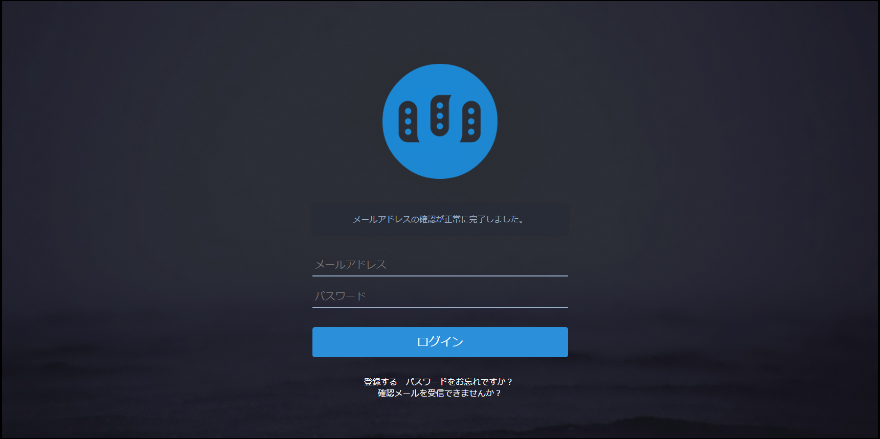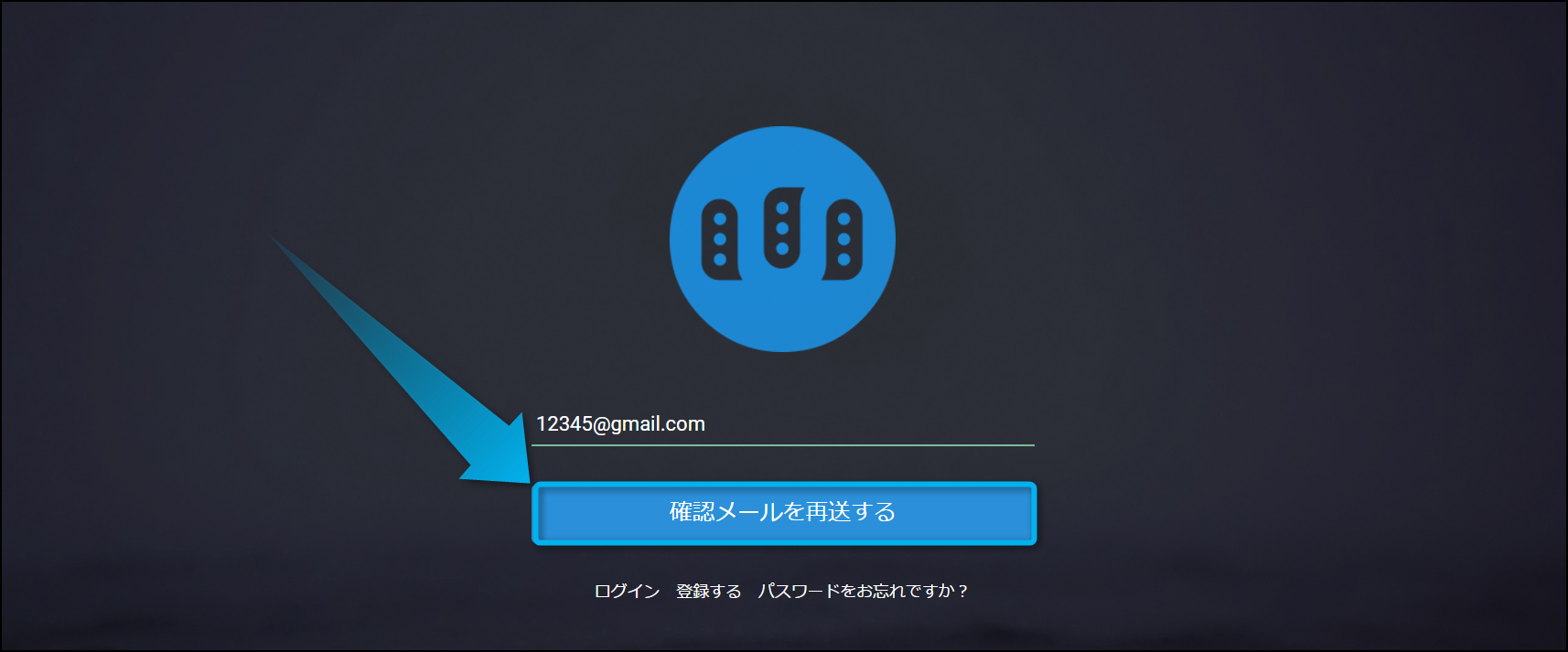 ログイン画面を開いたら、ログインボタンの真下にある『確認メール受信できませんか?』のテキストリンクをクリックして欲しい。