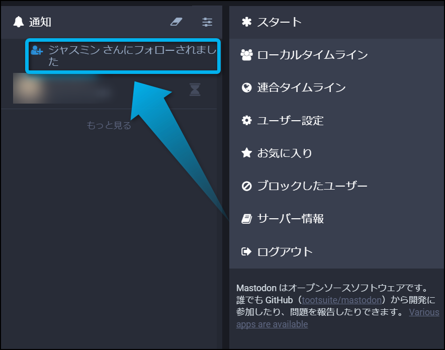 ちなみに、この設定をするしないにかかわらずホーム画面にある通知カラムは、フォローされた通知が表示される。(通知させたくない場合は別の設定が必要。)