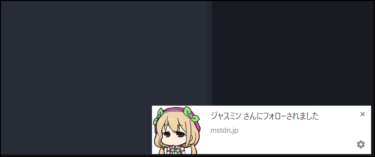 今回の通知を設定していなくても、誰かからフォローされた時は画面右下に通知が来るようになってるよ。