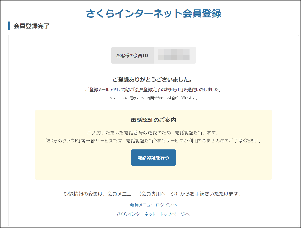 これで会員登録が完了。電話認証は後で行うから今はスルーでOKだよ。お客様の会員IDもメールで確認出来るからメモする必要はないね。