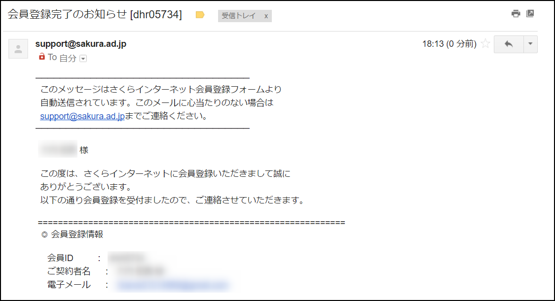 登録手続きが完了したら、一応『会員登録完了のお知らせ』というメールが届いているか確認しておこう。このメールには、会員ID、ご契約者名など重要な情報が記載されているから大切に保管しておいてね。