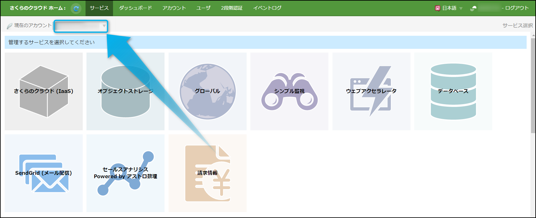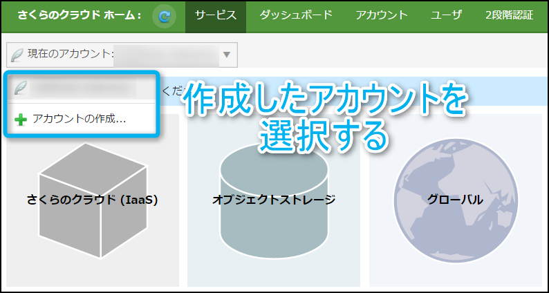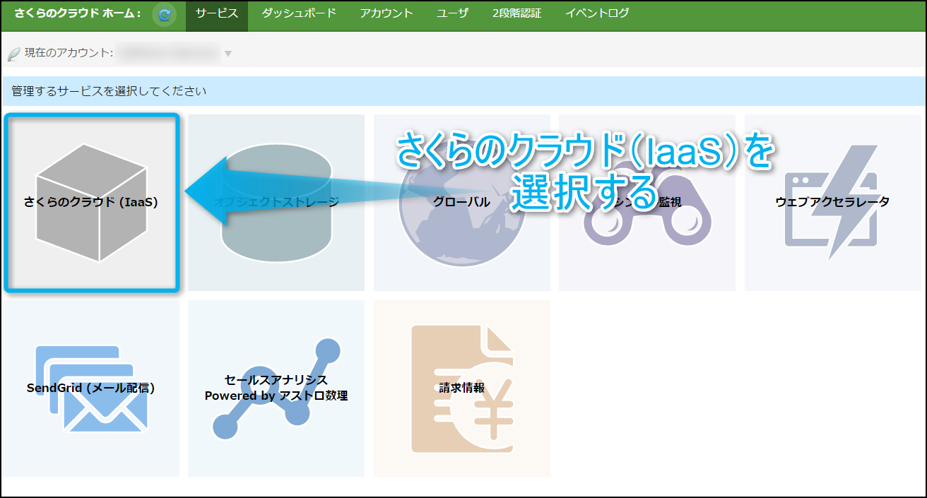 アカウントを選択したら『さくらクラウド(IaaS)』を選択して欲しい。