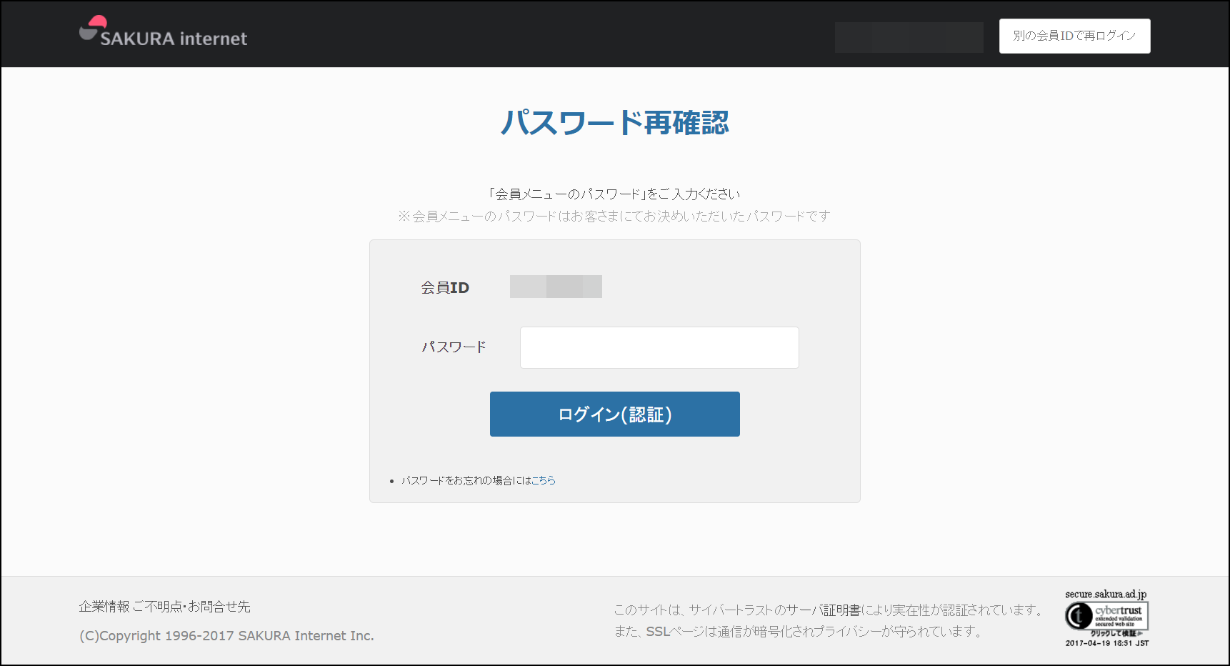パスワード再確認の画面が表示されたら、パスワードを入力して『ログイン(認証)』をクリックして欲しい。