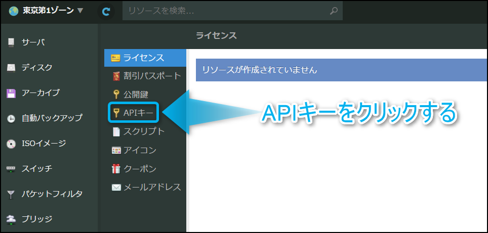 DNSゾーンの追加とAPIキーの作成が完了したら、いよいよサーバーを作成していこう。まずは左側のメニューから『サーバ』を選択してから画面右上にある『追加』をクリックして欲しい。
