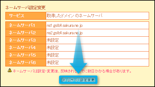その後でドメインのネームサーバ設定を「ns1.gslb4.sakura.ne.jp」「ns2.gslb4.sakura.ne.jp」にしました。