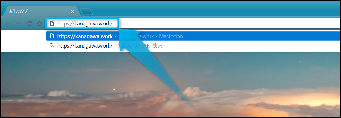 ここまで終わったらいよいよ自分が作ったインスタンスにアクセスしてみよう。ドキドキだね~!!アドレスバーに取得したドメイン(DNSゾーン)を貼り付けよう。