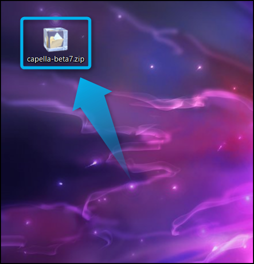 ダウンロードが終わったら『capella-beta7.zip』のファイルを解凍させよう。
