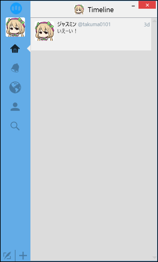 家のアイコンをクリックするとホーム画面のタイムラインが表示される。