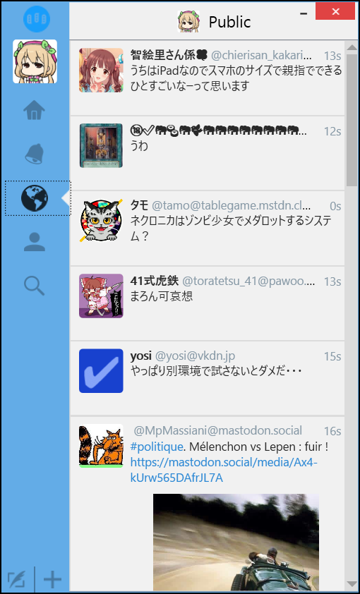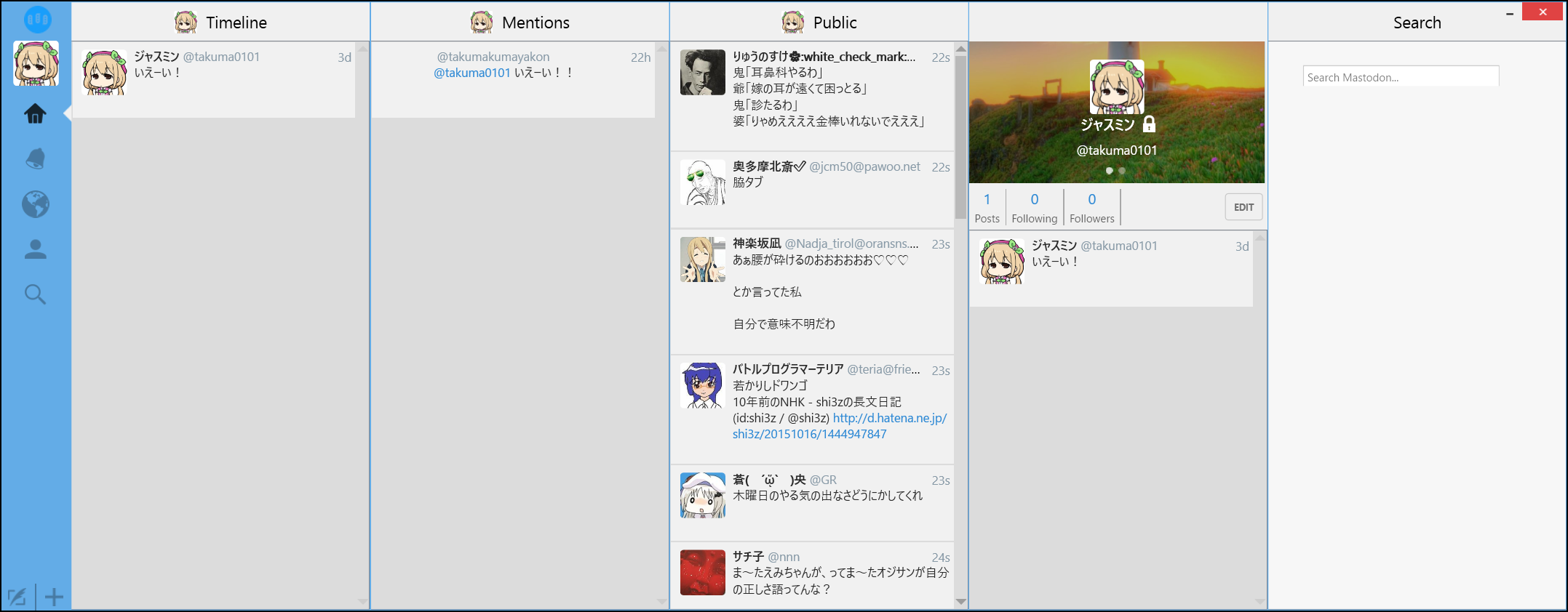 どちらというと、連合タイムラインより同じインスタンスの人のトゥートだけが見れるローカルタイムラインの方が重要だよね。
