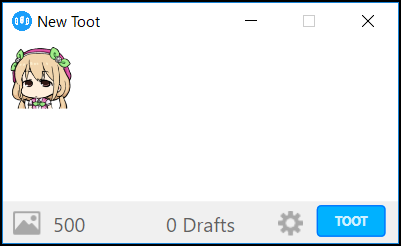 トゥートをする画面。トゥート!じゃなくて『TOOT』になってるね。