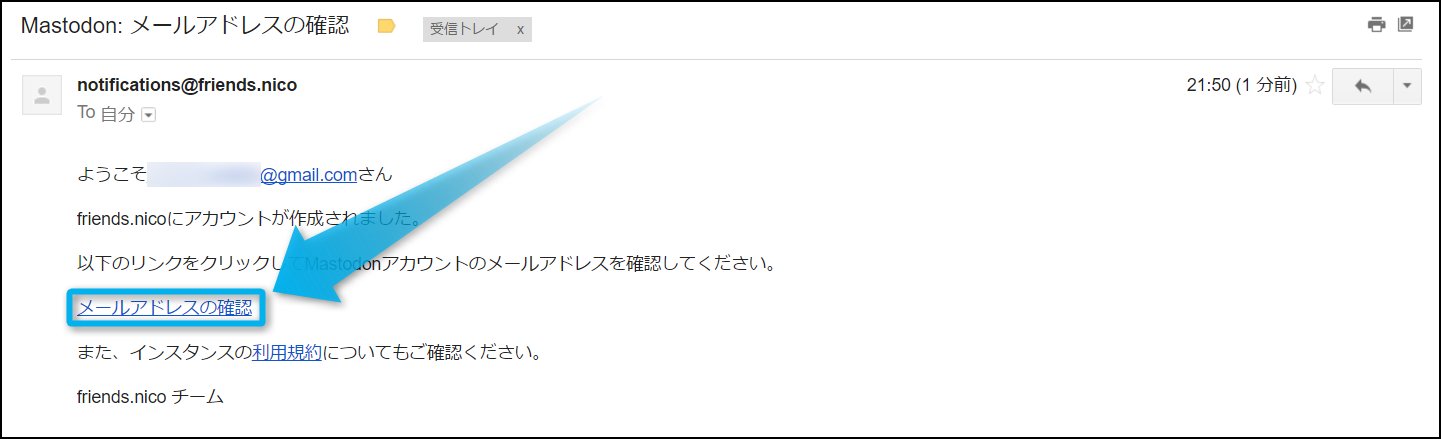 件名は『Mastodon: メールアドレスの確認』というもの。本文に記載されている『メールアドレスの確認』をクリックしよう。