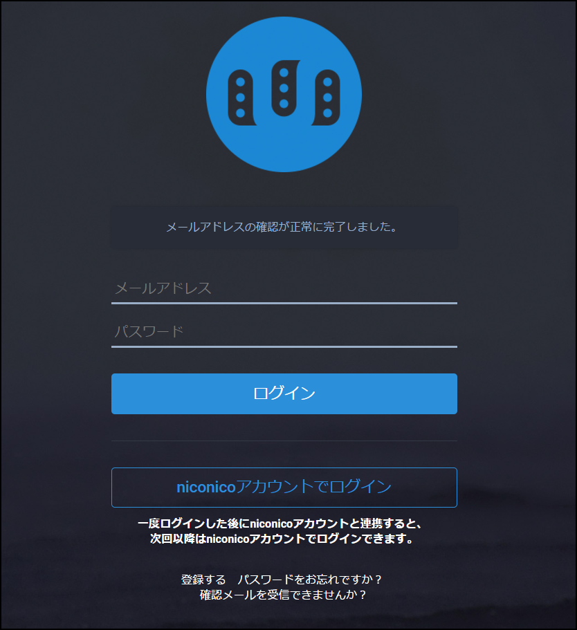 すると『メールアドレスの確認が正常に完了しました。』というメッセージが表示される。これでfriends.nicoの登録は完了だね。